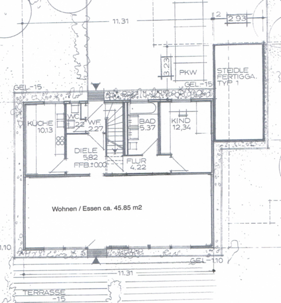 Dieses voll unterkellerte Einfamilienhaus ( Fertighaus Fabrikat OKAL * ) befindet sich in absolut ruhiger Wohnlage und präsentiert sich in einem sehr gepflegten Zustand. Neben einem großzügigen Wohn- und Essbereich mit angrenzender Südterrasse, verfügt die Immobilie über 3 weitere großzügig geschnittene Räume. Das große, mit Fenster versehene, Bad mit Dusche ist modern und hell gefließt, ebenso die Dusche im Erdgeschoß. Im Untergeschoß befinden sich Vorratskeller, Hobbyraum, Hauswirtschaftsraum sowie die Heizung (Öl) aus dem Jahre 2007. Der parkartig und liebevoll angelegte Garten verleiht dem Haus eine besondere Note und läßt das Herz eines jeden Garten- und Naturliebhabers höher schlagen.