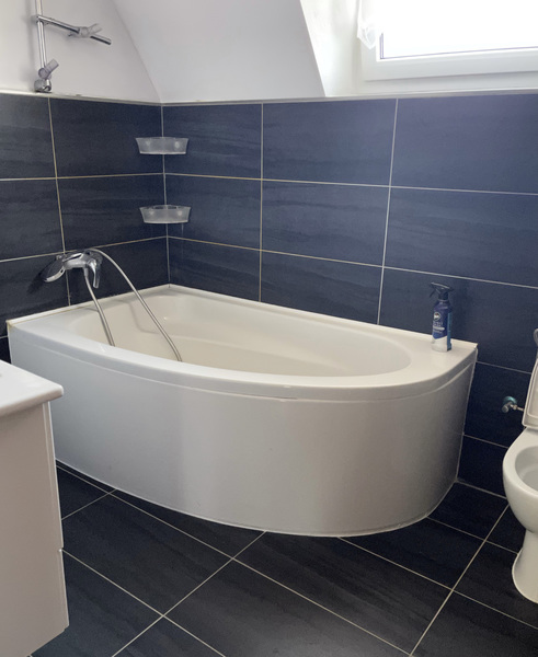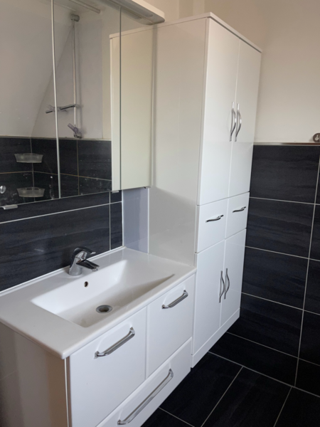 Markengeräten vorhanden. Fußböden bestehen überwiegend aus Fliesen- und Laminatböden. Das moderne Bad ist neuwertig und mit Badezimmermöbeln und Fenster ausgestattet. Im gesamten Haus sind neue