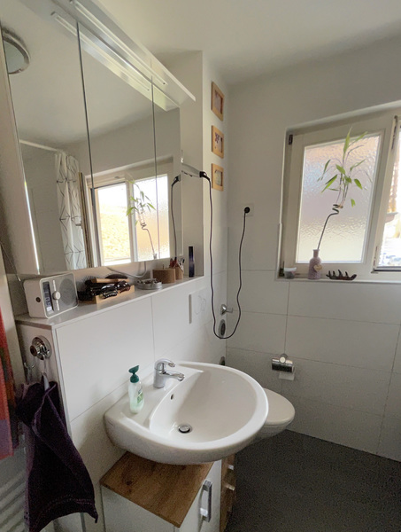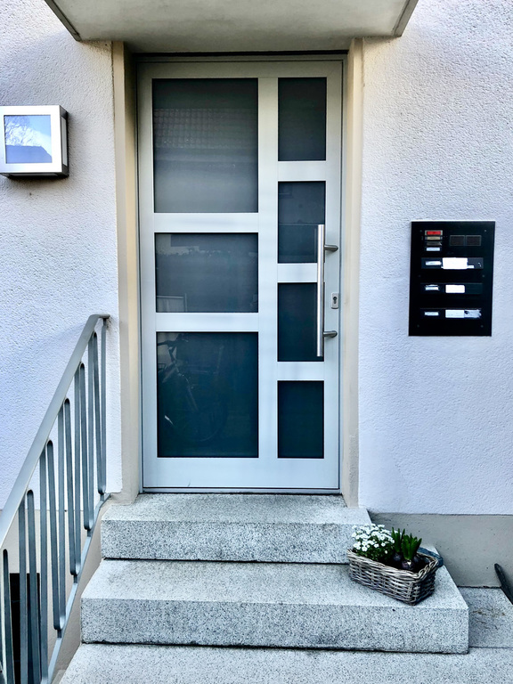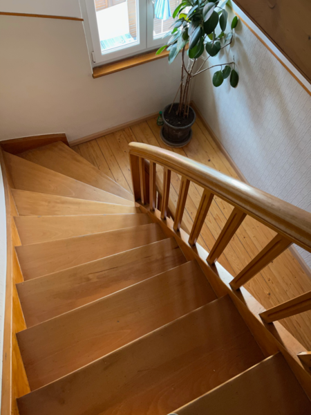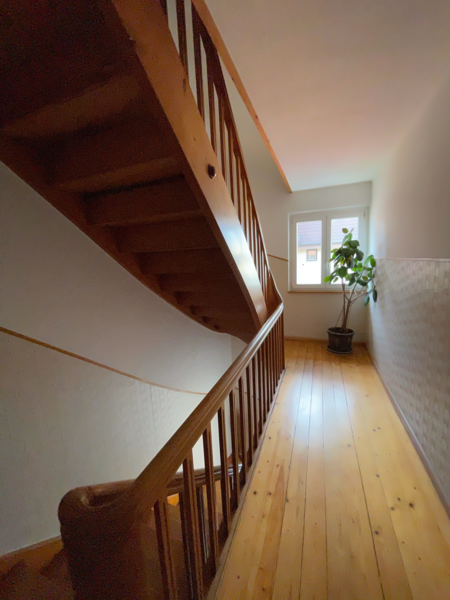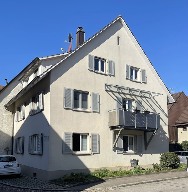 Die Wohnung im 1.OG verfügt über einen Balkon und der geschützte Freisitz vor der Haustüre bietet den Bewohnern angenehmen Aufenthalt im Freien. Das Gebäude ist voll unterkellert, hier gibt es u.a.