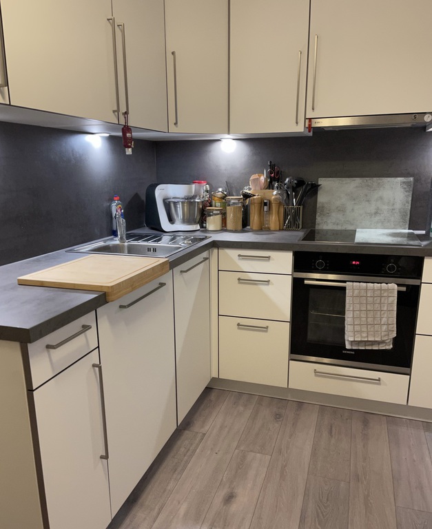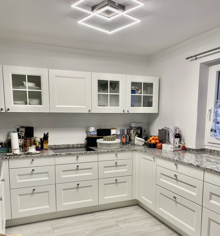 Sämtliche Küchen sind mit Einbauküchen versehen. Das Wohn- und Garagengebäude sind jeweils voll unterkellert. Im Untergeschoß des Wohnhauses ist für jeden Bewohner ein Kellerraum vorhanden, weiter gibt es einen Trockenraum sowie den Heizraum ( Gas-Zentralheizung ).