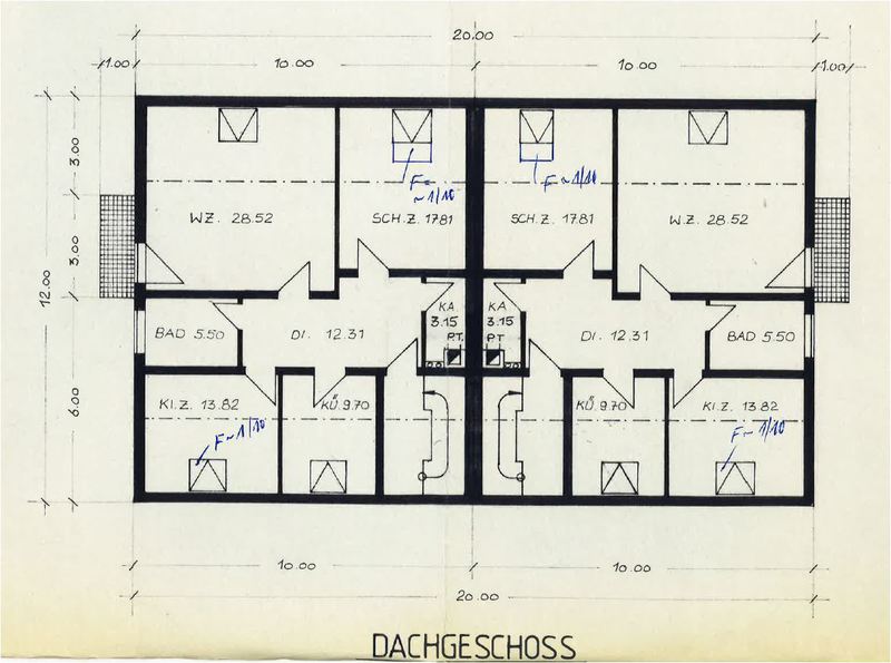 Dachgeschoß ) Beide Häuser sind vollständig unterkellert. Der umbaute Raum beläuft sich auf 2.486,64 m³. Die Bauweise ist massiv, 30 cm Poroton Aussenmauerwerk, betonierter