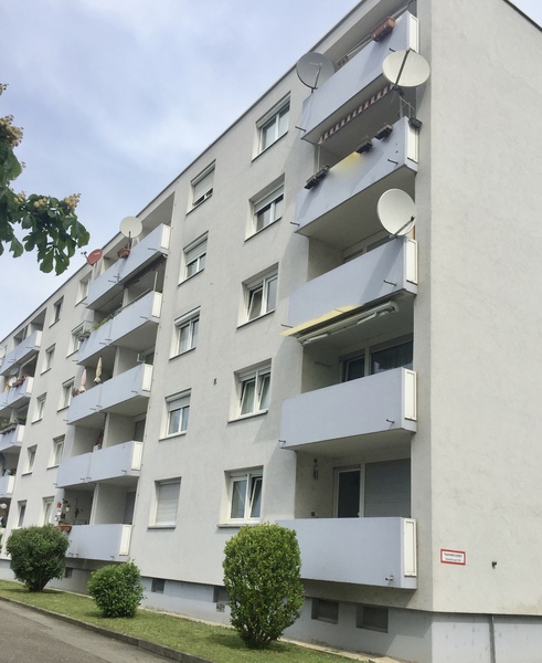 Diese renovierungsbedürftige Wohnung befindet sich im 4.Obergeschoß eines Mehrfamilienhauses mit 10 Wohnungen ( in diesem Eingang ) direkt an der Schweizer Grenze im Ortsteil Friedlingen von 79576 Weil am Rhein.