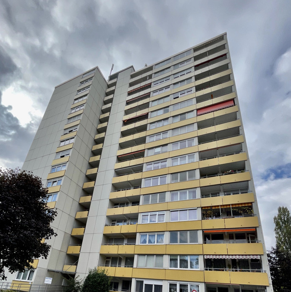 Die äußerst gepflegte 2 Zi.- Eigentumswohnung befindet sich in einem der obersten Geschosse eines zentral gelegenen Hochhauses. Die Wohnung ist perfekt geschnitten, sehr hell und bietet einen herrlichen Ausblick. Laufende Renovierung - neue Liftanlage, neue Fenster etc. - bieten ein sehr angenehmes Wohnumfeld. Mitverkauft wird eine abschliessbare Einzelgarage in der Tiefgarage.