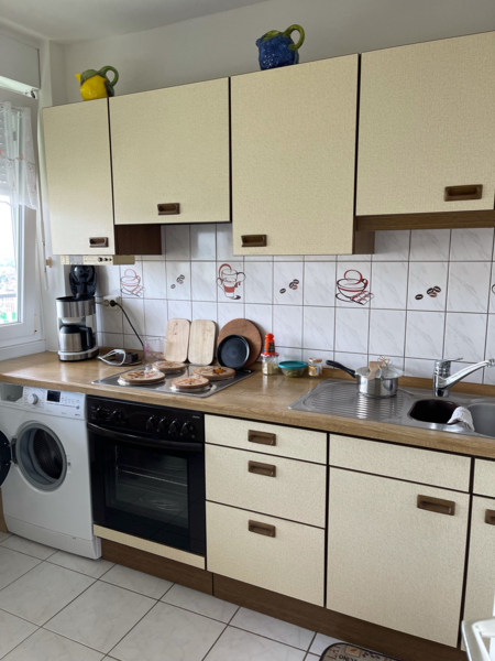 Fliesenböden, neue Fenster, Einbauküche, Duschbad m. WC, Abstellraum, grosse Loggia, Tiefgarage ( abschliessbar ), moderne Liftanlage.