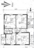 Die Wohnung ist mit Parkett - in den Wohn- und Schlafräumen- sowie mit Fliesenböden im Bad und der Küche ausgestattet. Im Bad mit Fenster finden Sie Dusche nebst Waschbecken und WC vor. Die vorhandene sehr gepflegte und große Einbauküche ist im Kaufpreis enthalten. Die gesamte Wohnung ist überaus hell.