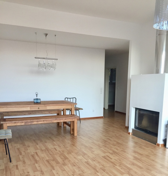 Parkett- und Fliesenböden, Luxusbad mit Duschtempel, Whirlpool - Wanne, Waschbecken herrliche Terrasse mit Blick über die Gartenstadt, offener Kamin, Einbauküche, 1 großer Tiefgaragenplatz mtl. € 70,00, optional ist ein zweiter TG möglich.